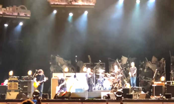 Insieme attaccano una versione a dir poco furiosa della leggendaria canzone di Neil Young “Rockin’ in the Free World”, brano che l’artista canadese scrisse nel 1989.